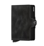 De Twinwallet bestaat uit twee Cardprotectors in een leren hoes met druksluiting. Met de Twinwallet neemt u acht tot twaalf kaarten beveiligd mee. Het binnenwerk biedt daarnaast ruimte voor extra kaarten, papiergeld, bonnetjes, visitekaartjes en muntgeld.