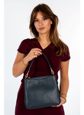 DALI FASHION *Schoudertas met afneembare korte band met fashionable plooien. De Dali Fashion heeft mooie opvallende leren plooien aan beide kanten van de tas. De Dali is afsluitbaar d.m.v. een rits en heeft aan de bi